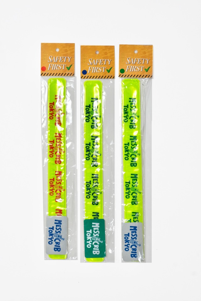 Mess Crib Tokyo"Super Safety First Band" 安全第一なメスクリブから便利な反射バンドがリリースです。 勝手にクルクル巻いてくれるので、腕につけたり、パンツの裾バンドにしたり、シートチューブに巻いたり使い方はあなた次第ですよ! リフレクターステッカー付き 3cmx30cm