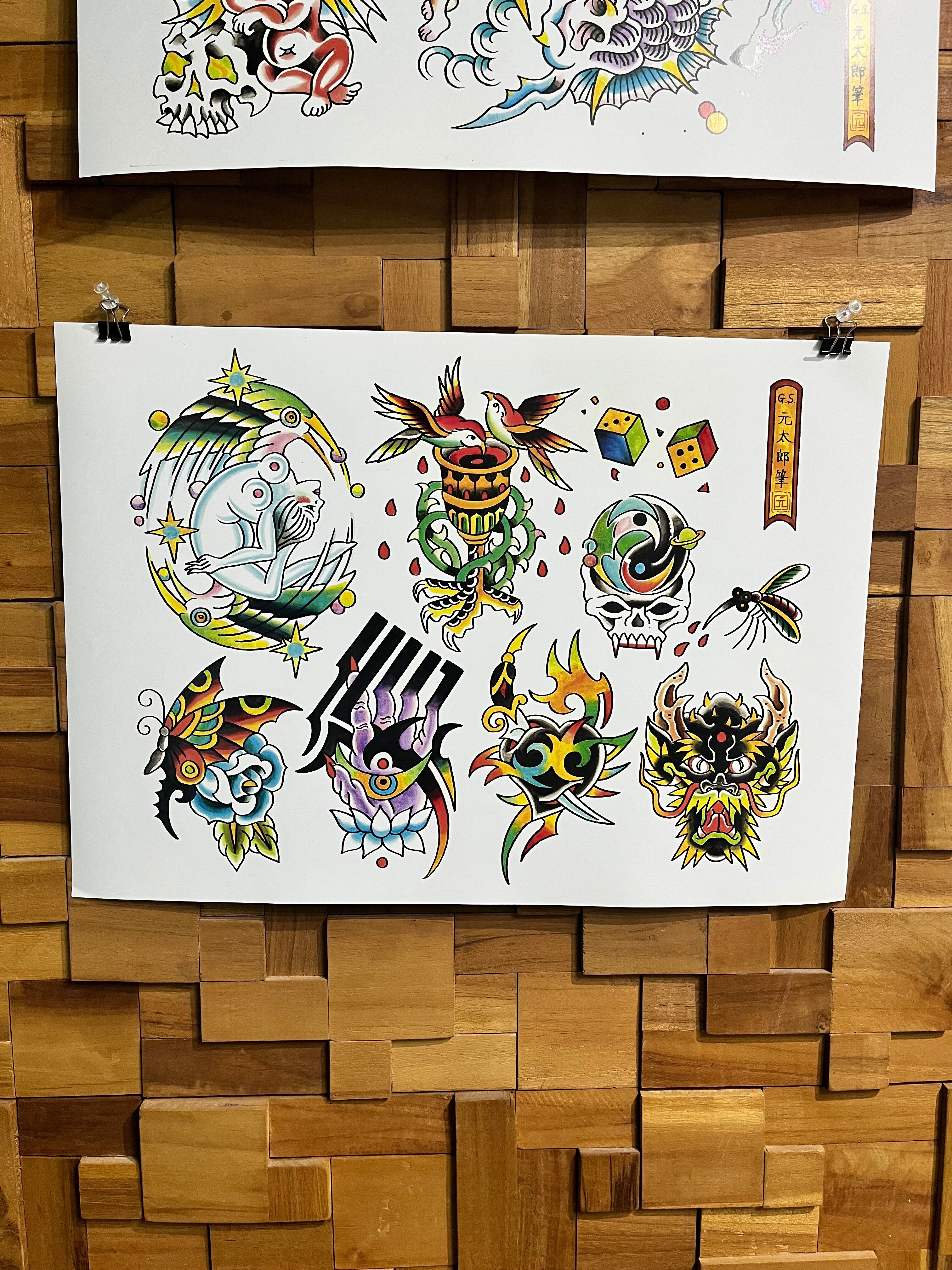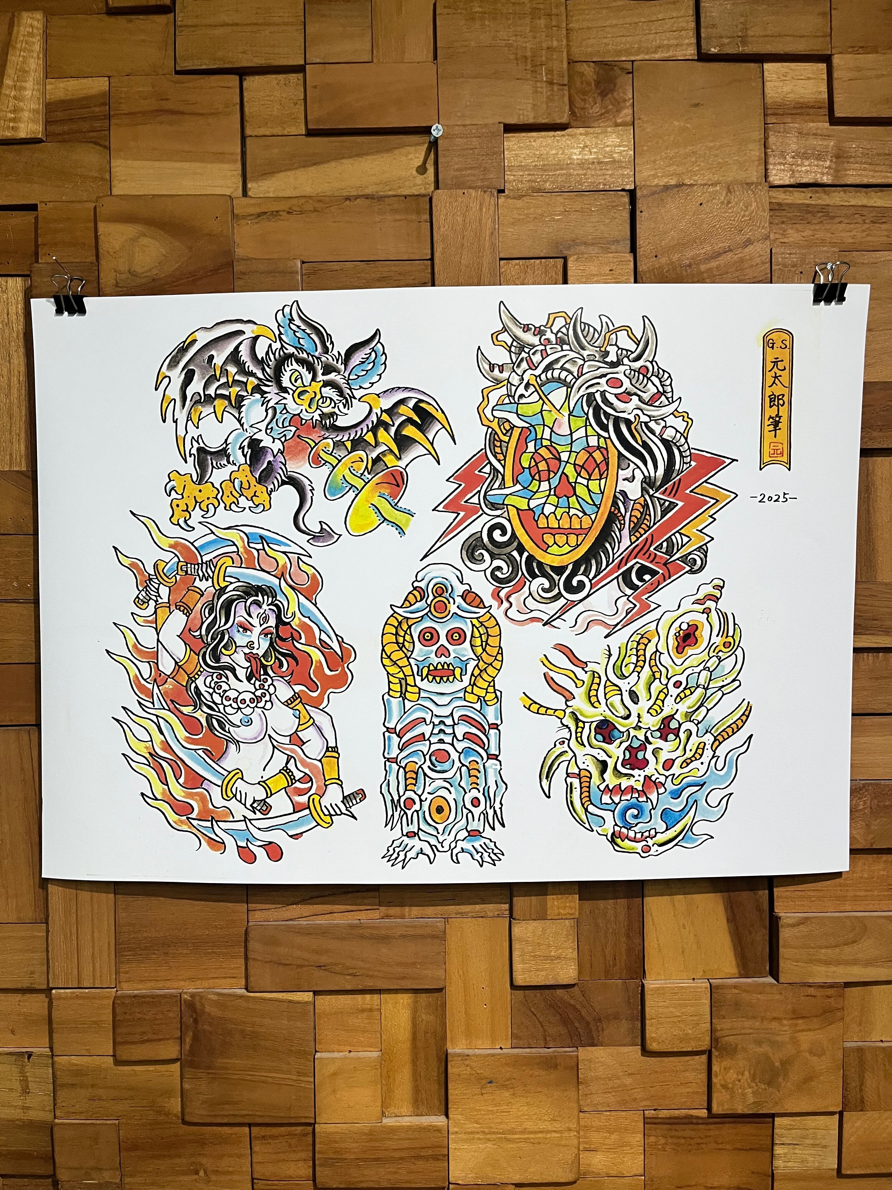 東京中目黒を拠点に活動するタトゥーアーティスト、元太郎(GENTARO)のタトゥーフラッシュのボスターです。全4種。