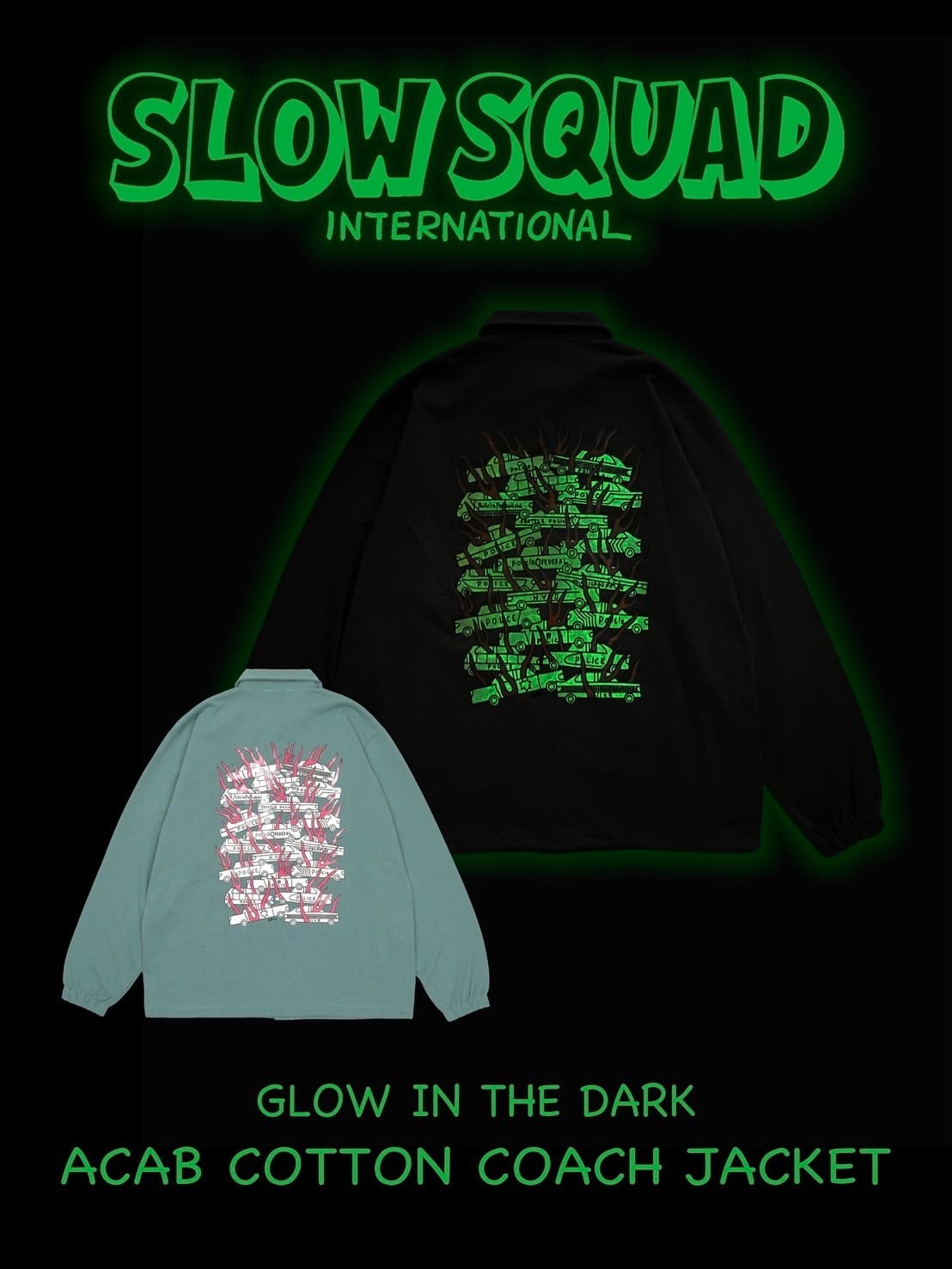 Slow Squad International "Glow in the dark A.C.A.B Cotton Coach Jacket"