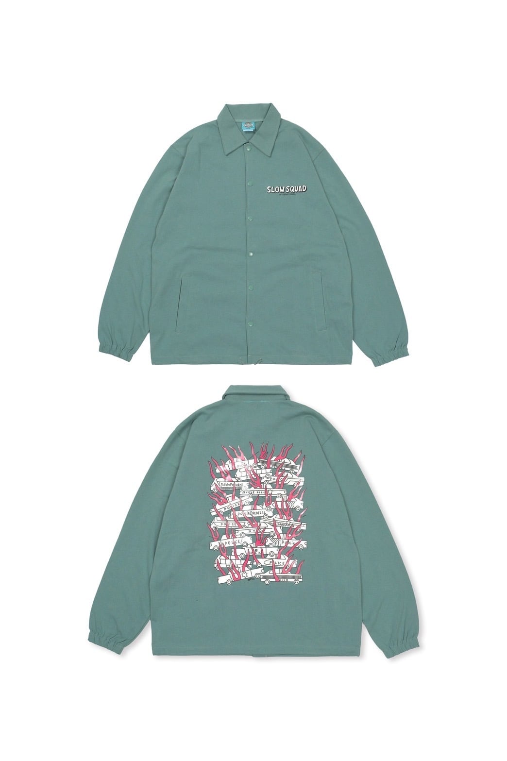 大人気のスロスクワッドのコットンコーチジャケットから、世界中のポリスカーが爆燃えしている人気のデザインで登場なんです。しかもパトカーは蓄光プリントが施され暗闇で安全に輝きます!