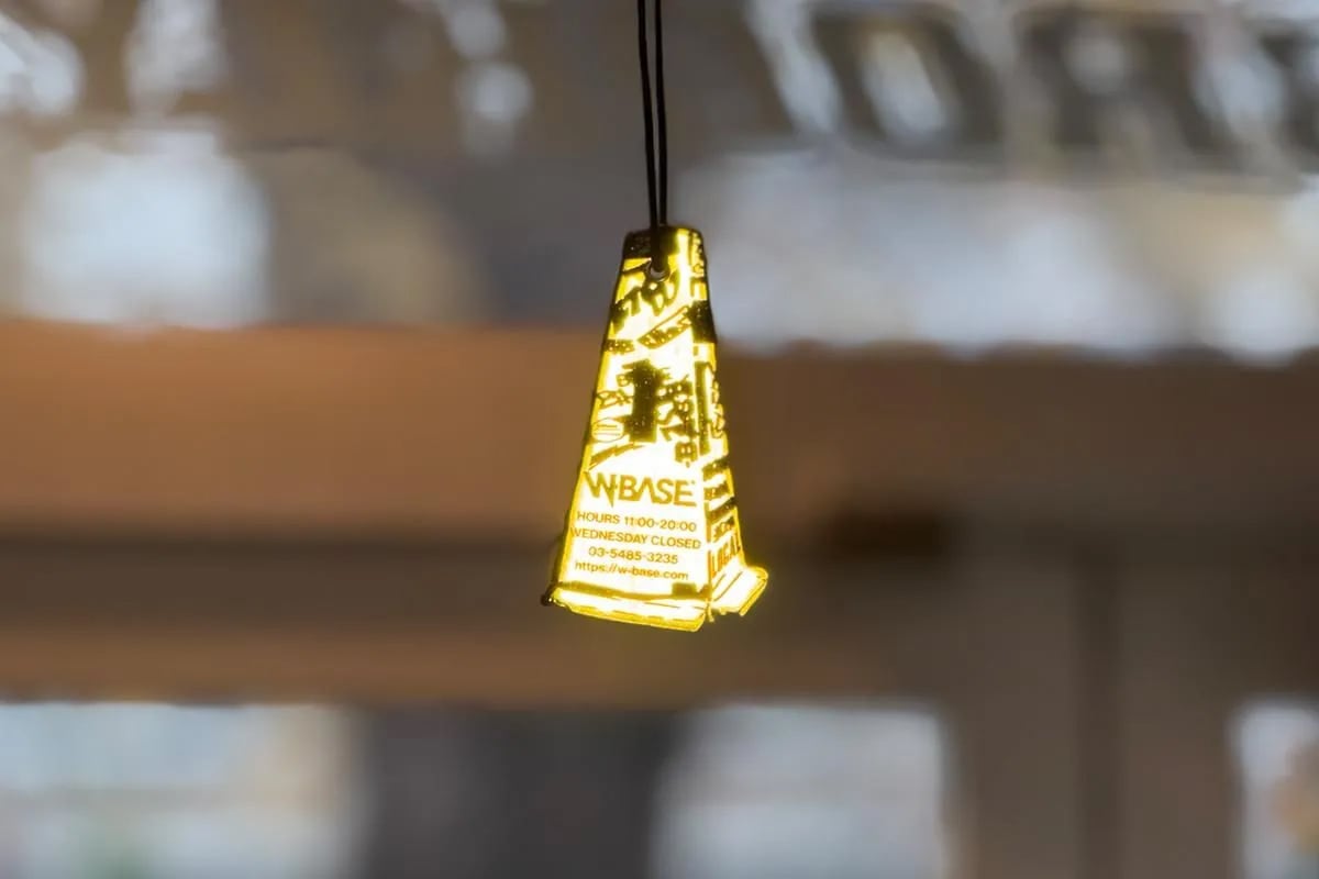 セーフティカラーのイエローリフレクターにブラックプリントを施した、視認性とデザイン性を兼ね備えたW-BASEオリジナルリフレクター。